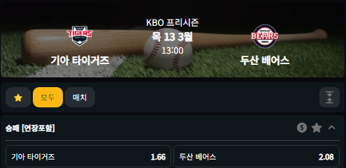 기아 타이거즈 승 1.66배당 (벳80기준)