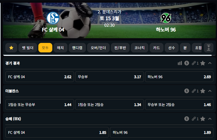 FC 샬케 04 0핸디승 1.85배당 (벳80기준)