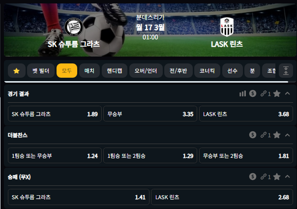 3월17일 SK 슈투름 그라츠 VS LASK 린츠 01:00