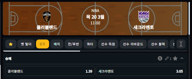 3월 20일 클리블랜드 VS 새크라멘토 11:00
