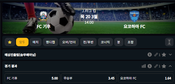 요코하마 FC 승 1.64배당 (벳80기준)