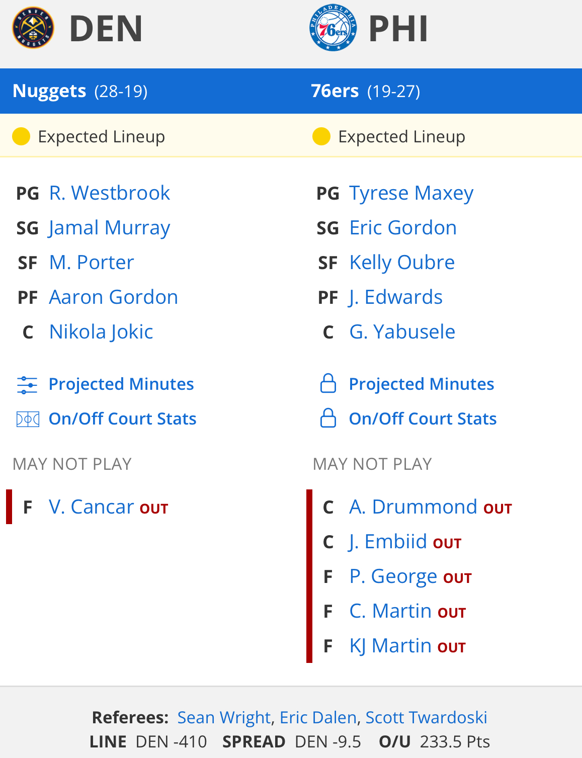 25.02.01 NBA 필라델피아 vs 덴버