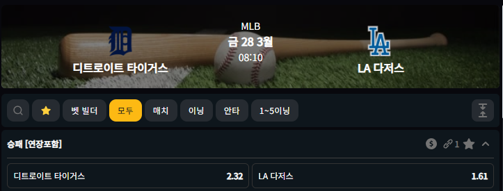 LA 다저스 승 1.61배당 (벳80기준)