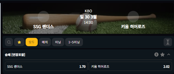 SSG 랜더스 승1.70배당 (벳80기준)