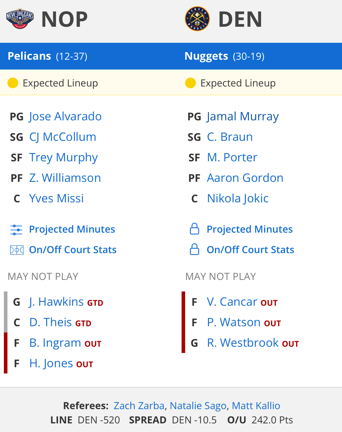덴버 vs 뉴올리언즈