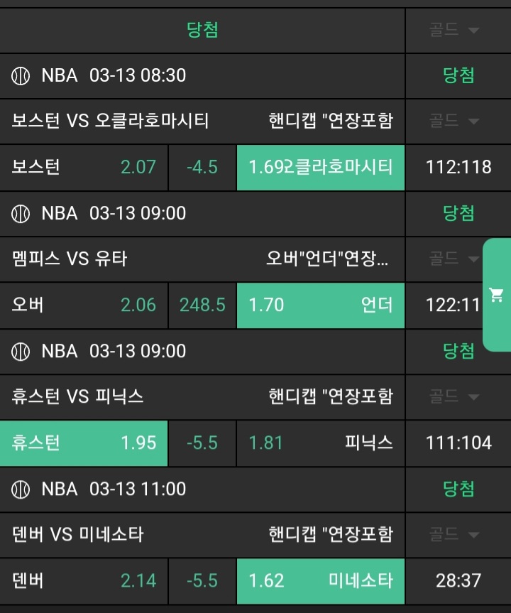 승오버 벳도 되네요 +5