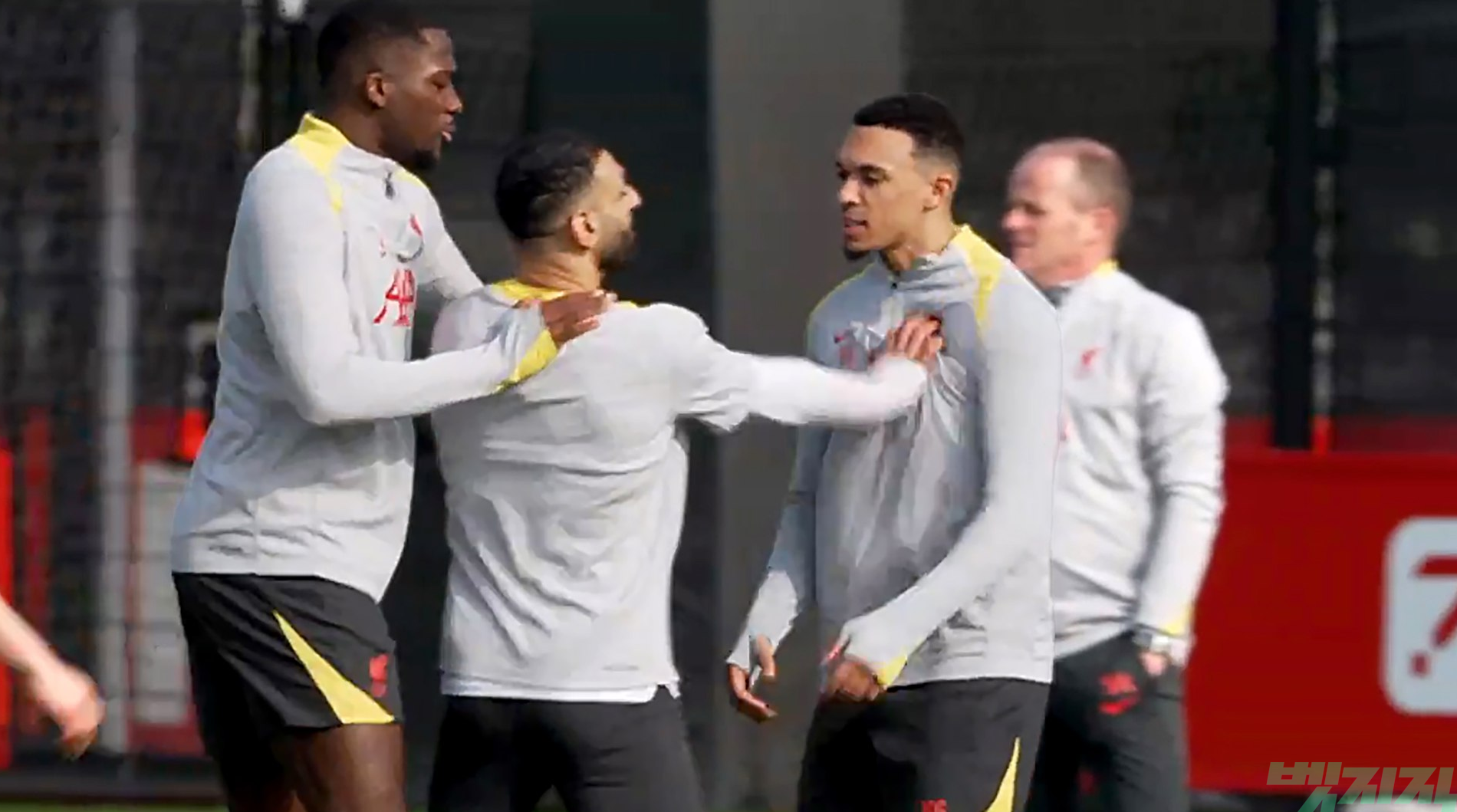 챔피언스리그 PSG전을 앞둔 리버풀 훈련에서 모하메드 살라와 트렌트 알렉산더-아놀드가 언쟁을 벌이는 모습이 포착되었습니다.